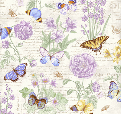 Ткань лоскутная 50 х 55 см "4702", сиреневые цветы и бабочки