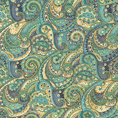 Ткань лоскутная 50 х 55 см "Trieste", пейсли зелёно-синий