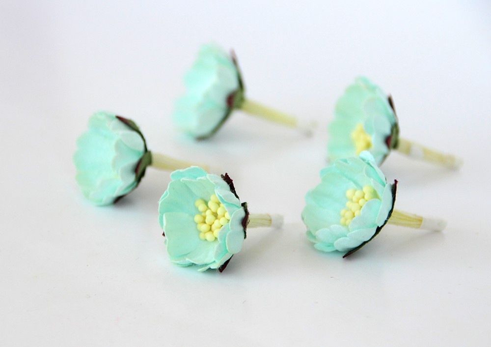 Бумажные цветы шиповника, диаметр околол 3 см, высота около 1.5 см, длина стебля около 2.5 см