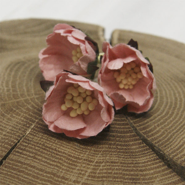 Бумажные цветы шиповника, диаметр околол 3 см, высота около 1.5 см, длина стебля около 2.5 см