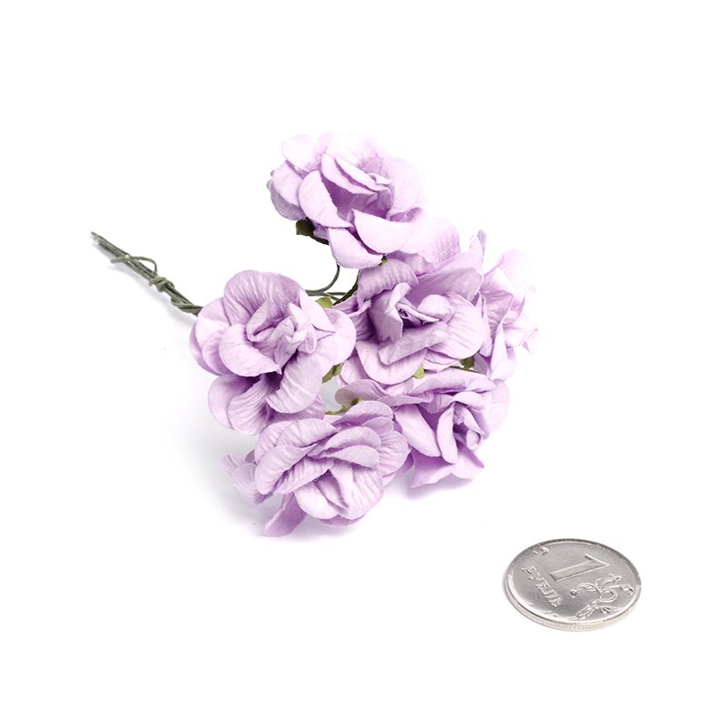6 бумажных цветов в букете. Размер бутона около 2, 5 см. Длина со стеблем около 8 см.