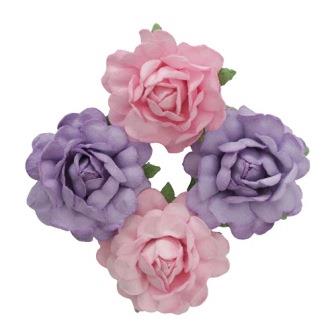 Цветы розы, 2 шт - белые, 2 шт - бело-розовые, диам - 35 мм