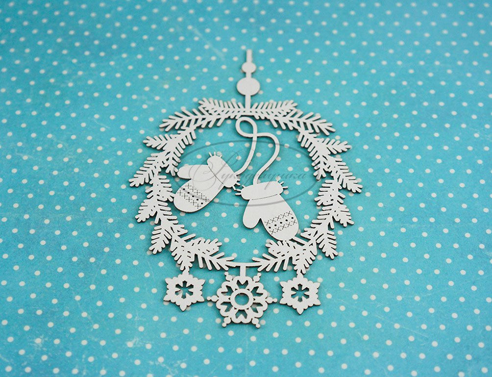 Вырубка из чипборда Рукоделушка "Новогодняя подвеска с рукавичками"