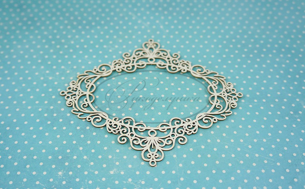 размер 120 х 105 мм,внутр. овал 81х52 мм. Используется в качестве украшения для скрапбукинга. Применяется в любых работах. Возможно окрашивание акрилом, акварелью, спреями или любыми другими красящими составами.