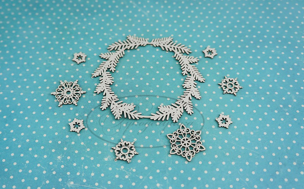 Вырубка из чипборда Рукоделушка "Рождественский венок со снежинками"