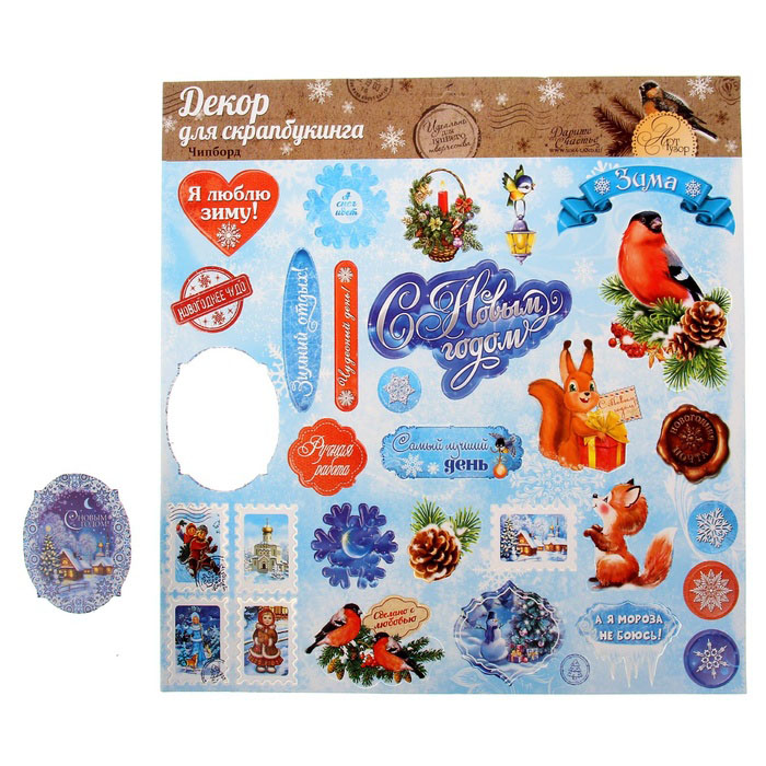 Набор картонных декоративных фигурок на листе 29,5 х 29,5 см. Элементы вырублены. Вырезать не нужно. Достаточно просто выдавить их из общего листа руками, немного нажав.Удобны в использовании. Предназначены для декора любых скрапработ.