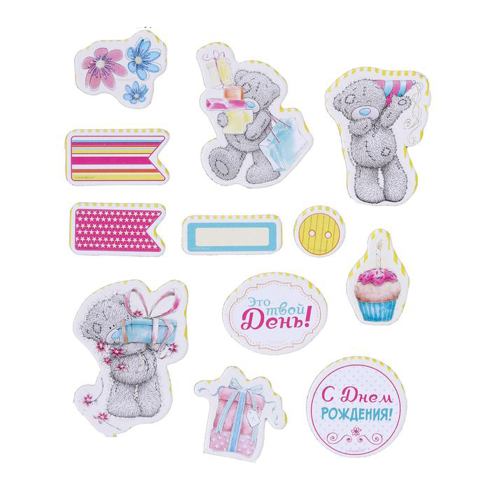 Вырубка из чипборда "Мишки Me toYou. С днём рождения"